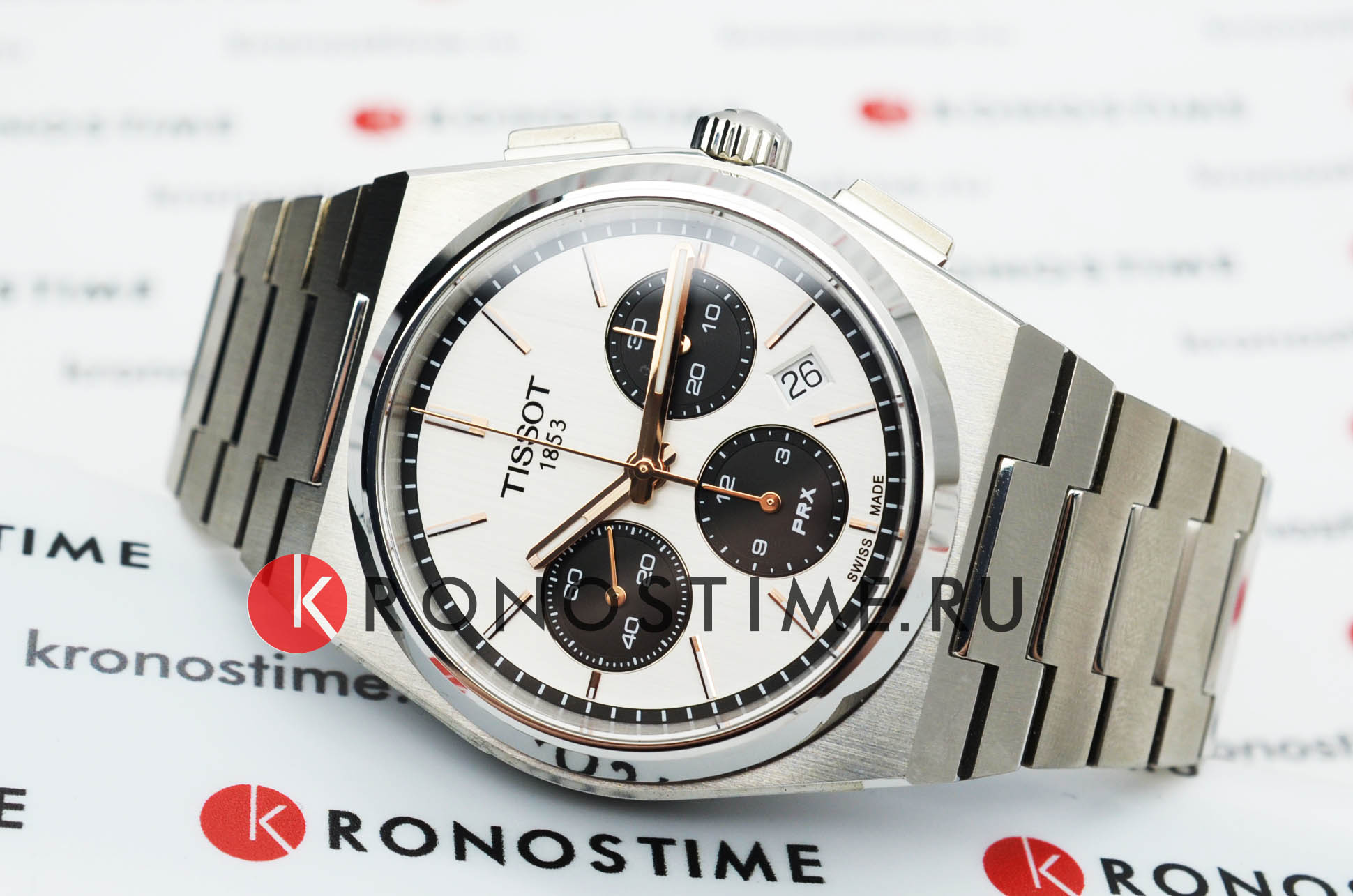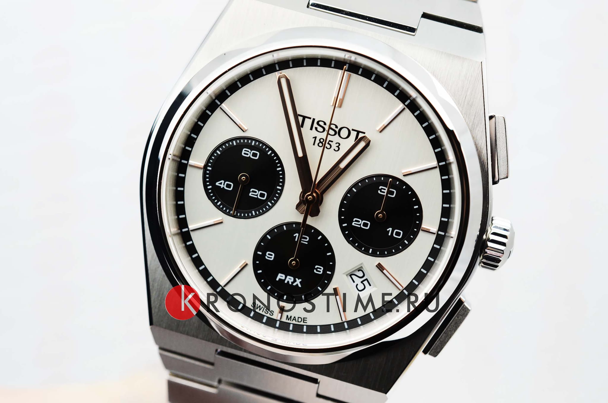 Мужские швейцарские часы-хронографХронографФункция позволяет измерять отрезки времени с особой точностью: часы, минуты, секунды. Верным признаком хронографа является наличие на циферблате 3 дополнительных окошек-счётчиков. Tissot PRX Automatic Chronograph T137.427.11.011.00, механический механизм (автоматический калибр) с высокой точностью. Сапфировое стеклоСапфировое стеклоПрочный и надёжный материал из кристалла сапфира синтетического происхождения, характеризующийся особой твёрдостью и устойчивостью к царапинам и повреждениям. устойчивое к появлению царапин, обладающее высокой прозрачностью. Класс водозащиты: 100 метров, позволит плавать, нырять и заниматься другими водными видами спорта. Корпус часов изготовлен из стали, серебристого цвета. Застёжка бабочка с кнопкамиЗастёжка "бабочка"Такой вид застёжки дополняется предохранителями, помогающими избежать случайного раскрытия браслета. Обладают изящным исполнением.