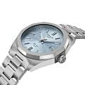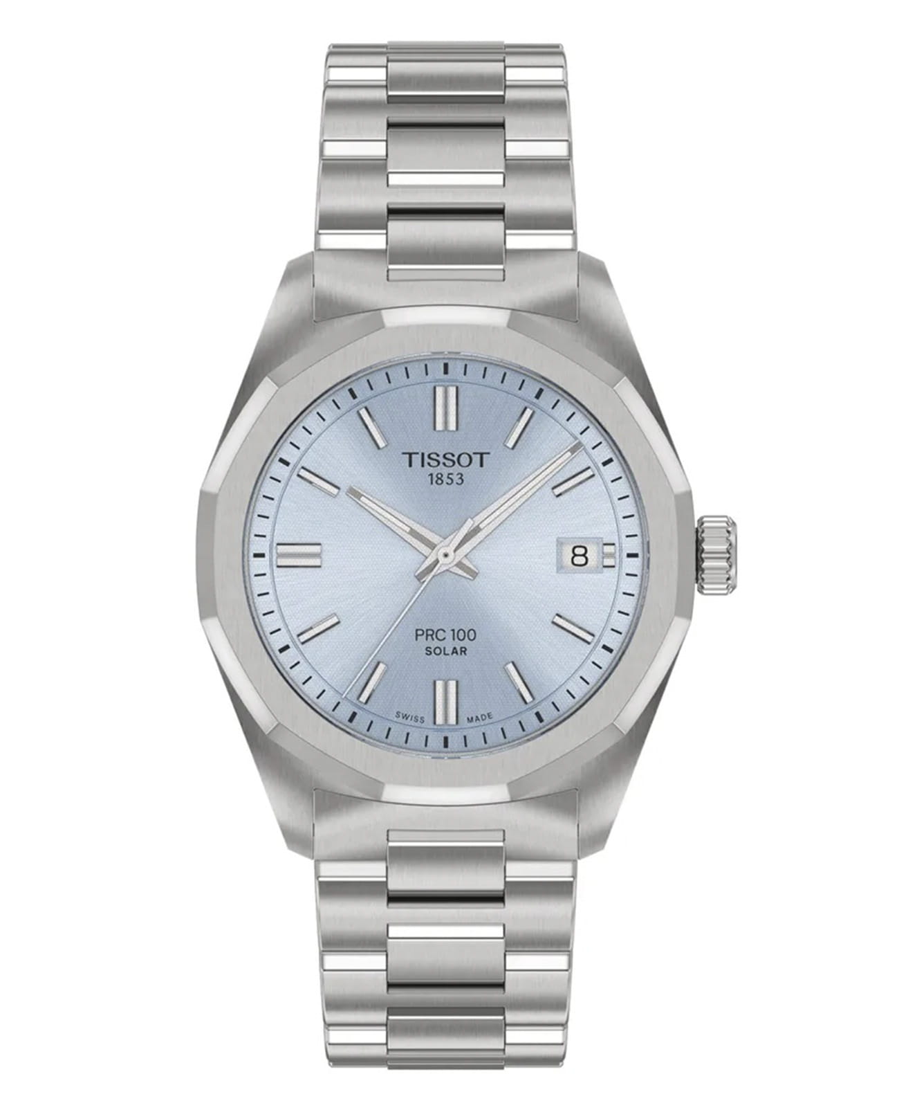 Женские кварцевые часы Tissot PRC 100 Solar Quartz 34mm T151.822.11.351.00 — это стильный аксессуар, вдохновлённый классикой современности. Модель выполнена из нержавеющей стали 316L с диаметром корпуса 34 мм и толщиной 9,14 мм, что делает её прочной и устойчивой к царапинам. Циферблат голубого цвета дополнен индексами, а его поверхность защищена сапфировым стекломСапфировое стеклоПрочный и надёжный материал из кристалла сапфира синтетического происхождения, характеризующийся особой твёрдостью и устойчивостью к царапинам и повреждениям., устойчивым к повреждениям. Стрелки и метки имеют люминесцентное покрытиеЛюминесцентное покрытиеПозволяет считывать показания времени в темноте. Производители наносят на стрелки, часовые индексы, безель или поверхность циферблата светонакопительный состав, дающий холодное свечение. Super-LumiNova®, обеспечивающее отличную читаемость даже в условиях слабого освещения. Часы оснащены солнечным кварцевым механизмом швейцарского производства, который обеспечивает точную работу и минимальное обслуживание. Браслет из нержавеющей стали серого цвета оснащён застёжкой-бабочкойЗастёжка "бабочка"Такой вид застёжки дополняется предохранителями, помогающими избежать случайного раскрытия браслета. Обладают изящным исполнением. , обеспечивающей комфорт и надёжную фиксацию на запястье. Ремешок является быстросменным, что позволяет легко менять его по желанию. Водонепроницаемость позволяет использовать модель во время плавания. Гарантия 3 года подтверждает качество и долговечность изделия. Эти часы станут универсальным аксессуаром для тех, кто ценит сочетание стиля, функциональности и швейцарского мастерства — идеальный выбор для повседневной носки и активного образа жизни.
