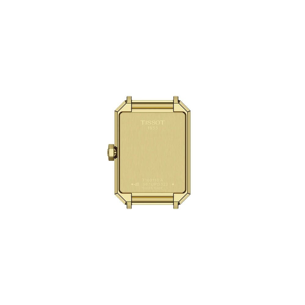 Tissot SRV 30mm — утончённая модель в винтажном стиле с элегантным акцентом. Корпус прямоугольной формы украшен PVDPVDУльтратонкое покрытие наносится в технике вакуумного напыления, сочетает в себе нитрид титана особой прочности со слоем золота или оксида хрома. Несёт в себе декоративную или защитную функцию.-покрытием в оттенке жёлтого золота, что придаёт часам благородный облик. Чёрный циферблат с лаконичными метками в виде точек подчёркивает минималистичный характер модели, а за точность отвечает швейцарский кварцевый механизм. Циферблат защищён сапфировым стекломСапфировое стеклоПрочный и надёжный материал из кристалла сапфира синтетического происхождения, характеризующийся особой твёрдостью и устойчивостью к царапинам и повреждениям., стойким к царапинам. Часы дополнены кожаным ремешком с классической пряжкой, что обеспечивает комфортную посадку на запястье и гармонично завершает дизайн.