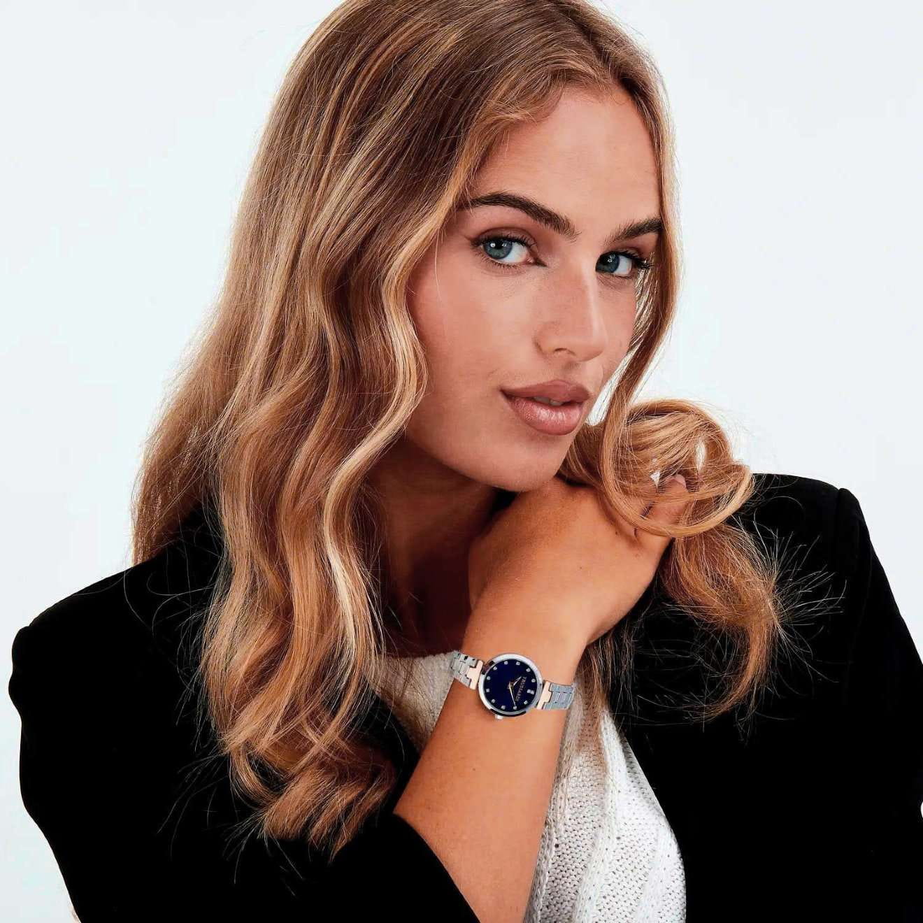 Итальянские женские часы Trussardi Loud R2453164504 - это стильный женский аксессуар, который сочетает элегантный дизайн и практичность. Корпус выполнен из нержавеющей стали, что обеспечивает долговечность и утончённый внешний вид. Надежное минеральное стеклоМинеральное стеклоМинеральное стекло представляет собой искусственно выращенный минерал кварца. Такое стекло отличается особой устойчивостью к повреждениям и царапинам. Уступает по некоторым качествам сапфировому стеклу. защищает циферблат с кристаллами от царапин и обеспечивает долговечность. Модель оснащена кварцевым механизмом, обеспечивающим высокую точность хода. Браслет из нержавеющей стали с частичным IP-покрытиемIP-покрытиеМетод ионного напыления. Демонстрирует повышенную устойчивость к истиранию, окислению и химическим веществам. Под воздействием высокого давления и температуры около 1500°C молекулы металла надёжно соединяются с частицами корпуса часов. на раскладной застёжкеРаскладная застёжкаТакой тип застёжки используется только на браслетах из металла. Она никогда не раскрывается полностью, происходит разделение на 2 и более частей. Раскладывающая застёжка снизит вероятность потери часов к минимуму. обеспечивает комфортное ношение. Стрелки оснащены люминесцентным покрытиемЛюминесцентное покрытиеПозволяет считывать показания времени в темноте. Производители наносят на стрелки, часовые индексы, безель или поверхность циферблата светонакопительный состав, дающий холодное свечение., обеспечивающим отличную видимость даже при слабом освещении. Водозащита 50 метров позволит защитить корпус от случайных брызг или капель дождя. Эта модель – отличный выбор для тех, кто ищет сочетание стиля, качества и функциональности. Часы станут не только полезным аксессуаром, но и выразительным элементом вашего имиджа.