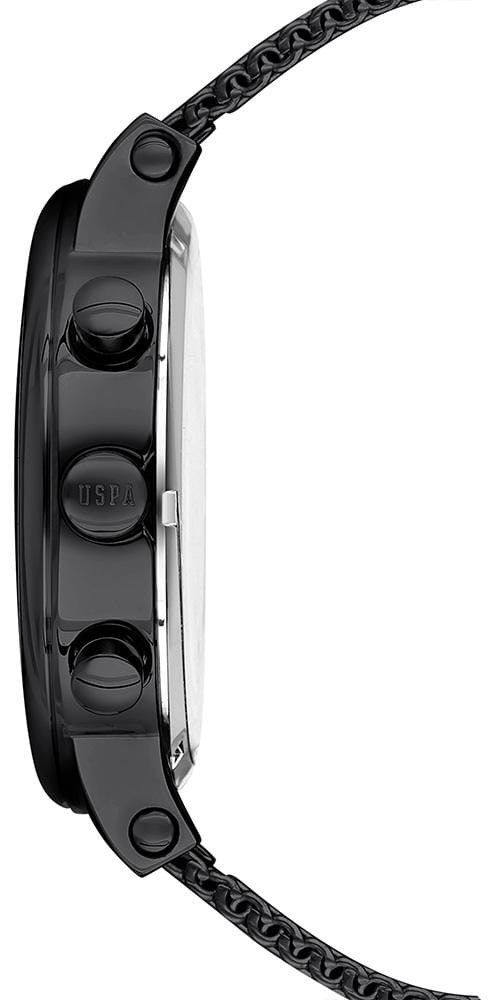 Мужские часы часы U.S. Polo Assn. Crossing USPA1008-03, кварцевый механизм с высокой точностью. Минеральное стеклоМинеральное стеклоМинеральное стекло представляет собой искусственно выращенный минерал кварца. Такое стекло отличается особой устойчивостью к повреждениям и царапинам. Уступает по некоторым качествам сапфировому стеклу. устойчивое к появлению царапин, обладающее высокой прозрачностью. Центральные часовая, минутная и секундная стрелки. Индикация даты и дня недели. 12/24х часовой формат времени. Корпус изготовлен из нержавеющей стали с IP-покрытиемIP-покрытиеМетод ионного напыления. Демонстрирует повышенную устойчивость к истиранию, окислению и химическим веществам. Под воздействием высокого давления и температуры около 1500°C молекулы металла надёжно соединяются с частицами корпуса часов.. На циферблате три дополнительных индикатора. Стрелки и метки с люминесцентным покрытиемЛюминесцентное покрытиеПозволяет считывать показания времени в темноте. Производители наносят на стрелки, часовые индексы, безель или поверхность циферблата светонакопительный состав, дающий холодное свечение.. Класс водозащиты: 50 метров, позволит защитить корпус от случайных брызг или капель дождя. Стальной браслет миланского плетения на раскладном замкеРаскладной замокДанный вариант застежки используется только на часах с металлическим браслетом. Отличительная особенность такого крепления в том, что длина браслета становится универсальной и вы можете самостоятельно отрегулировать нужный вам размер – застежка просто двигается по браслету часов. с IP-покрытиемIP-покрытиеМетод ионного напыления. Демонстрирует повышенную устойчивость к истиранию, окислению и химическим веществам. Под воздействием высокого давления и температуры около 1500°C молекулы металла надёжно соединяются с частицами корпуса часов..