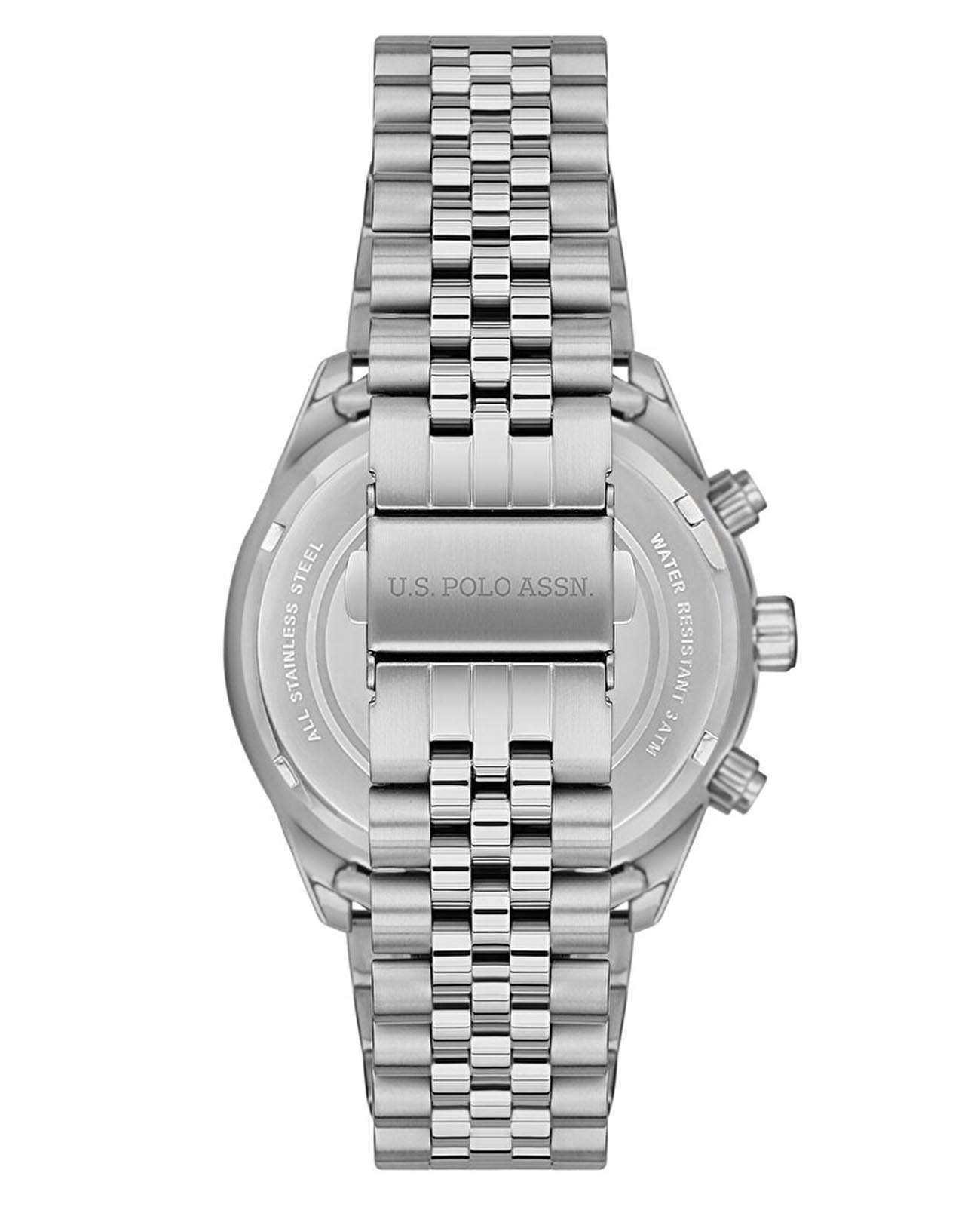 Мужские часы U.S. Polo Assn. Crossing USPA1054-03, кварцевый механизм с высокой точностью. Минеральное стеклоМинеральное стеклоМинеральное стекло представляет собой искусственно выращенный минерал кварца. Такое стекло отличается особой устойчивостью к повреждениям и царапинам. Уступает по некоторым качествам сапфировому стеклу. устойчивое к появлению царапин, обладающее высокой прозрачностью. Корпус изготовлен из нержавеющей стали. Центральные часовая, минутная и секундная стрелки. Индикация даты и дня недели. 12/24х часовой формат времени. Стрелки с люминесцентным покрытиемЛюминесцентное покрытиеПозволяет считывать показания времени в темноте. Производители наносят на стрелки, часовые индексы, безель или поверхность циферблата светонакопительный состав, дающий холодное свечение.. Класс водозащиты: 50 метров, позволит защитить корпус от случайных брызг или капель дождя. Стальной браслет на раскладной застёжкеРаскладная застёжкаТакой тип застёжки используется только на браслетах из металла. Она никогда не раскрывается полностью, происходит разделение на 2 и более частей. Раскладывающая застёжка снизит вероятность потери часов к минимуму..