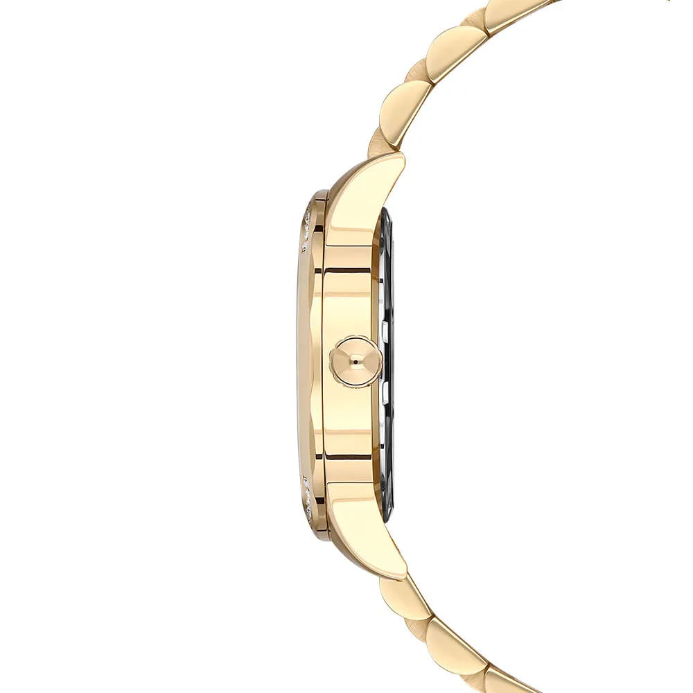 Женские элегантные часы U.S. Polo Assn. Stile USPA2059-06, кварцевый механизм с высокой точностью. Минеральное стеклоМинеральное стеклоМинеральное стекло представляет собой искусственно выращенный минерал кварца. Такое стекло отличается особой устойчивостью к повреждениям и царапинам. Уступает по некоторым качествам сапфировому стеклу. устойчивое к появлению царапин, обладающее высокой прозрачностью. Изысканный корпус изготовлен из нержавеющей стали с IP-покрытиемIP-покрытиеМетод ионного напыления. Демонстрирует повышенную устойчивость к истиранию, окислению и химическим веществам. Под воздействием высокого давления и температуры около 1500°C молекулы металла надёжно соединяются с частицами корпуса часов., а безельБезельВнешний ободок, закрепляющий стекло. В спортивных часах так называется поворотное кольцо с делениями на циферблате, выполняет роль таймера – замеряет отрезки времени на шкале. Неподвижный безель – элемент декора. Однонаправленно вращающийся безель на дайверских часах позволяет фиксировать моменты погружения и выныривания на поверхность. и циферблат украшены кристаллами. Лаконичные золотистые центральные часовая, минутная и секундная стрелки. Класс водозащиты: 50 метров, позволит защитить корпус от случайных брызг или капель дождя. Стальной браслет с IP-покрытиемIP-покрытиеМетод ионного напыления. Демонстрирует повышенную устойчивость к истиранию, окислению и химическим веществам. Под воздействием высокого давления и температуры около 1500°C молекулы металла надёжно соединяются с частицами корпуса часов. на застёжке-бабочкеЗастёжка "бабочка"Такой вид застёжки дополняется предохранителями, помогающими избежать случайного раскрытия браслета. Обладают изящным исполнением. обеспечивает комфорт и удобство в использовании, добавляя завершающий штрих к этому стильному аксессуару. Окошко даты находится в положении 3 часов. Циферблат подчёркивает изысканный характер часов, создавая универсальный образ, подходящий как для повседневных ситуаций, так и для особых случаев.