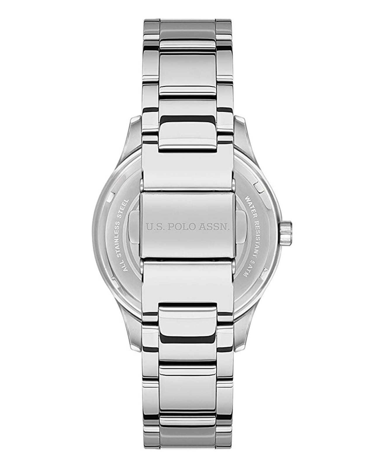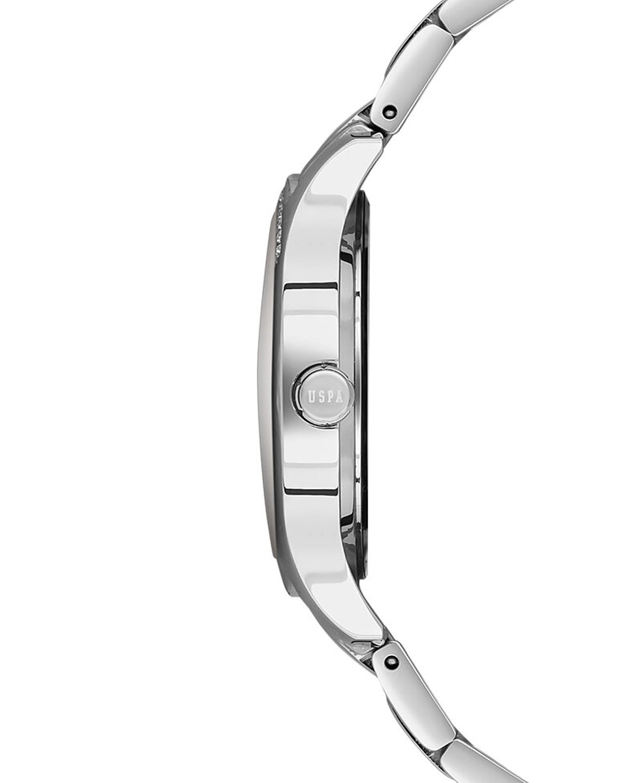 Женские часы U.S. Polo Assn Stile USPA2060-05, кварцевый механизм с высокой точностью. Минеральное стеклоМинеральное стеклоМинеральное стекло представляет собой искусственно выращенный минерал кварца. Такое стекло отличается особой устойчивостью к повреждениям и царапинам. Уступает по некоторым качествам сапфировому стеклу. устойчивое к появлению царапин, обладающее высокой прозрачностью. Корпус изготовлен из нержавеющей стали. БезельБезельВнешний ободок, закрепляющий стекло. В спортивных часах так называется поворотное кольцо с делениями на циферблате, выполняет роль таймера – замеряет отрезки времени на шкале. Неподвижный безель – элемент декора. Однонаправленно вращающийся безель на дайверских часах позволяет фиксировать моменты погружения и выныривания на поверхность. и циферблат украшены кристаллами. Окошко даты в положении 3 часа. Класс водозащиты: 30 метров, позволит защитить корпус от случайных брызг или капель дождя. Стальной браслет на раскладной застёжкеРаскладная застёжкаТакой тип застёжки используется только на браслетах из металла. Она никогда не раскрывается полностью, происходит разделение на 2 и более частей. Раскладывающая застёжка снизит вероятность потери часов к минимуму..