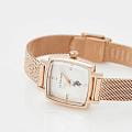 Женские наручные часы U.S. Polo Assn. Stile USPA2066-03 — это стильный и лаконичный аксессуар, выполненный в форме квадрата. Модель изготовлена из стали с PVD-покрытиемPVDУльтратонкое покрытие наносится в технике вакуумного напыления, сочетает в себе нитрид титана особой прочности со слоем золота или оксида хрома. Несёт в себе декоративную или защитную функцию. цвета розового золота, что придаёт ей благородный внешний вид и устойчивость к царапинам. Циферблат белого цвета дополнен секундной стрелкой, обеспечивающей точность отсчёта времени. Защиту циферблата обеспечивает минеральное стеклоМинеральное стеклоМинеральное стекло представляет собой искусственно выращенный минерал кварца. Такое стекло отличается особой устойчивостью к повреждениям и царапинам. Уступает по некоторым качествам сапфировому стеклу., устойчивое к мелким повреждениям. Часы оснащены кварцевым механизмом, гарантирующим точность и минимальное обслуживание. Водонепроницаемость 3 АТМ позволяет использовать часы в повседневных условиях — при мытье рук или под лёгким дождём. Браслет выполнен в технике миланской сетки из стали с покрытием розового золота и оснащён раскладным замкомРаскладной замокДанный вариант застежки используется только на часах с металлическим браслетом. Отличительная особенность такого крепления в том, что длина браслета становится универсальной и вы можете самостоятельно отрегулировать нужный вам размер – застежка просто двигается по браслету часов., обеспечивающей комфорт и уверенную фиксацию на запястье. Толщина корпуса составляет 10 мм, а его размеры — 26x26 мм, что делает часы компактными и удобными в носке. Эти часы станут универсальным аксессуаром для уверенных в себе женщин, которые ценят сочетание стиля, качества и эстетики — идеальный выбор для повседневного образа и торжественных случаев.