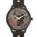 На запястье эти массивные дизайнерские часы смотрятся эффектно, стильно и завораживающе. Они надолго приковывают внимание окружающих. Дизайнерские часы Domus с круглым черным корпусом. Циферблат украшен изящным изображением головы льва. Рифленая заводная головка. Кожаный ремешок декорирован металлическими заклепками.