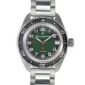 Мужские российские механические наручные часы Восток Командирские 02033А, механический механизм (автоматический калибр) с высокой точностью. Класс водозащиты: 200 метров, позволит плавать, нырять и заниматься другими водными видами спорта. Стрелки с люминесцентным покрытиемЛюминесцентное покрытиеПозволяет считывать показания времени в темноте. Производители наносят на стрелки, часовые индексы, безель или поверхность циферблата светонакопительный состав, дающий холодное свечение.. Вращающийся безельБезельВнешний ободок, закрепляющий стекло. В спортивных часах так называется поворотное кольцо с делениями на циферблате, выполняет роль таймера – замеряет отрезки времени на шкале. Неподвижный безель – элемент декора. Однонаправленно вращающийся безель на дайверских часах позволяет фиксировать моменты погружения и выныривания на поверхность. из нержавеющей стали с PVDPVDУльтратонкое покрытие наносится в технике вакуумного напыления, сочетает в себе нитрид титана особой прочности со слоем золота или оксида хрома. Несёт в себе декоративную или защитную функцию. покрытием. Окошко даты находится в положении 3 часа. Автоподзавод с предохранительным устройством от перезаводки пружины. Частота: 19800 полуколебаний/час. Браслет с раскладной застёжкойРаскладная застёжкаТакой тип застёжки используется только на браслетах из металла. Она никогда не раскрывается полностью, происходит разделение на 2 и более частей. Раскладывающая застёжка снизит вероятность потери часов к минимуму..