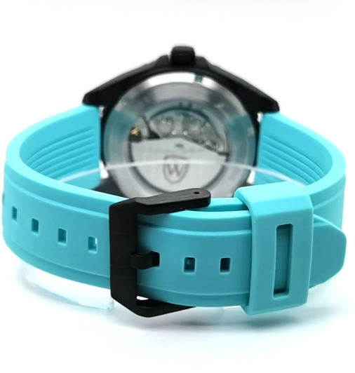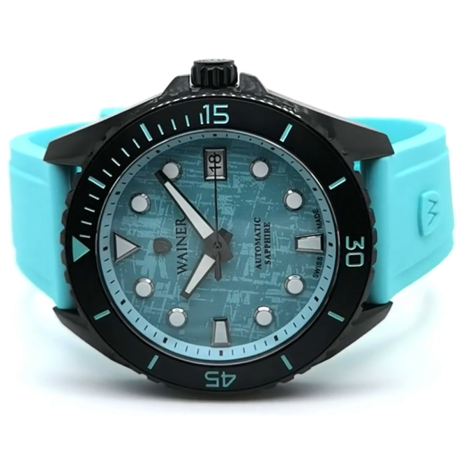 Модель Wainer WA.25110-A сочетает швейцарское качество, современный дизайн и надежность. Корпус диаметром 46 мм выполнен из нержавеющей стали с PVD-покрытиемPVDУльтратонкое покрытие наносится в технике вакуумного напыления, сочетает в себе нитрид титана особой прочности со слоем золота или оксида хрома. Несёт в себе декоративную или защитную функцию., придающим часам стильный и современный вид. Циферблат оформлен в динамичном стиле, а сапфировое стеклоСапфировое стеклоПрочный и надёжный материал из кристалла сапфира синтетического происхождения, характеризующийся особой твёрдостью и устойчивостью к царапинам и повреждениям. защищает его от царапин и механических повреждений, обеспечивая четкость отображения информации. Часы оснащены автоматическим механизмом, обеспечивающим точность хода. Гибкий силиконовый ремешок бирюзового цвета создает эффектный контраст и гарантирует комфортное ношение. Водонепроницаемость до 100 метров делает модель подходящей для плавания и активного отдыха. Wainer WA.25110-A — это стильный аксессуар для мужчин, ценящих сочетание яркого дизайна, швейцарской точности и спортивной функциональности.