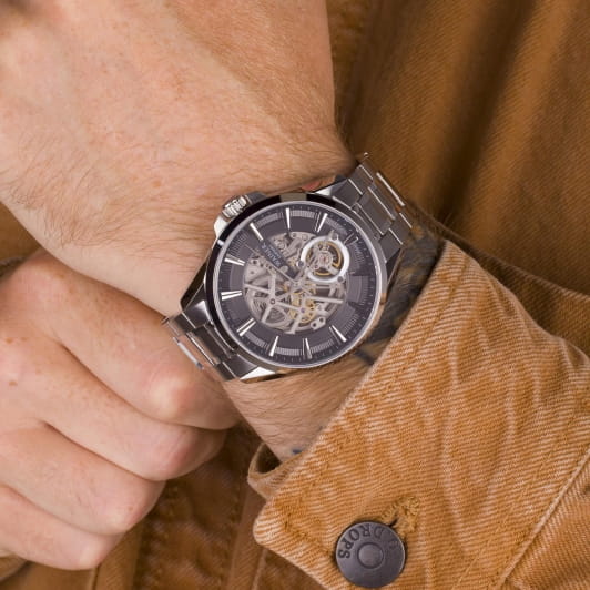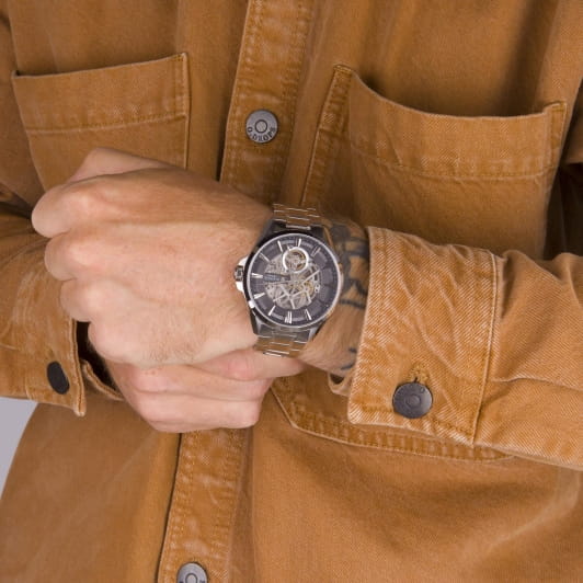 Модель Wainer WA.25511-A сочетает элегантность, швейцарское качество и техническое совершенство. Корпус диаметром 46 мм выполнен из нержавеющей стали 316L, обеспечивая прочность и долговечность. Скелетонизированный циферблат раскрывает сложность автоматического механизма Landeron Depa DP2072, а сапфировое стеклоСапфировое стеклоПрочный и надёжный материал из кристалла сапфира синтетического происхождения, характеризующийся особой твёрдостью и устойчивостью к царапинам и повреждениям. защищает дисплей от царапин и механических повреждений. Прозрачная задняя крышка подчеркивает эстетику работы механизма, а браслет из нержавеющей стали 316L на застёжке-бабочке с кнопкамиЗастёжка "бабочка"Такой вид застёжки дополняется предохранителями, помогающими избежать случайного раскрытия браслета. Обладают изящным исполнением. гарантирует надежную фиксацию и комфортное ношение. Водонепроницаемость до 50 метров защищает часы от случайных брызг и дождя. Wainer WA.25511-A — это стильный аксессуар для мужчин, ценящих швейцарское качество, современный дизайн и мастерство часового искусства.